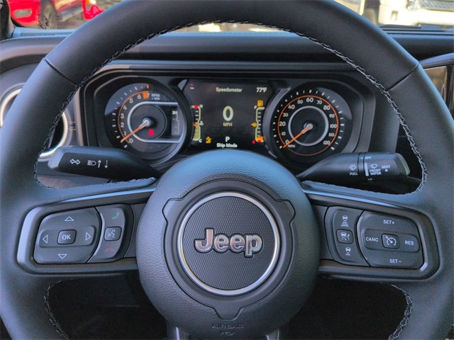 Convenience Group (Corning Gorilla Glass, Daytime Running Lamp System, Emergency/Assistance Call, Front Door Locks 2-Door Passive Entry, Heated Front Seats, Heated Steering Wheel, Remote Start System, and Universal Garage Door Opener), Quick Order Package 24Q High Tide (97 MPH Vehicle Max Speed Calibration, Advanced Brake Assist, Automatic Headlamps, Body Color 3-Piece Hard Top, Body Color Fender Flares (2-Piece), Deep Tint Sunscreen Windows, Freedom Panel Storage Bag, Full Length Floor Console Premium Armrest, Full Speed Forward Collision Warning Plus, Hard Seat Back, High Tide, High Tide Tailgate & Hood Decals, Integrated Radar Camera Module (IRCM), Leather Wrapped Park Brake Handle, Leather Wrapped Shift Knob, Power 4-Way Driver Lumbar Adjust, Power 4-Way Passenger Lumbar Adjust, Power Adjust 8-Way Driver Seat, Power Adjust 8-Way Front Passenger Seat, Power Heated Mirrors, Premium Door Trim Panel, Premium McKinley Trimmed Seats, Premium Wrapped Steering Wheel, Rear Armrest w/Cupholder Seat, Rear Sliding Window, Rear Window Defroster, Security Alarm, Sun Visors w/Illuminated Vanity Mirrors, Wheels: 17" x 7.5" Painted Black, and Willys Suspension), Technology Group (115V Auxiliary Power Outlet, 12.3" Touchscreen Display, 400W Inverter, 4G LTE Wi-Fi Hot Spot, Alexa Built-In, Apple CarPlay, Auto-Dimming Rear-View Mirror, Bluetooth Wireless Speaker, Connected Travel & Traffic Services, Connectivity - US/Canada, Google Android Auto, GPS Antenna Input, GPS Navigation, HD Radio, Integrated Center Stack Radio, Integrated Voice Command w/Bluetooth, Media Hub w/2 Charge Only USBs, Radio: Uconnect 5 Nav w/12.3" Display, SiriusXM Radio Service, SiriusXM w/360L, and USB Host Flip), 110 MPH Vehicle Max Speed Calibration, 3.73 Rear Axle Ratio, 4-Wheel Disc Brakes, 8 Speakers, ABS brakes, Air Conditioning, Alpine Premium Audio System, AM/FM radio: SiriusXM, Apple CarPlay/Android Auto, Brake assist, Cloth Low-Back Bucket Seats, Compass, Delay-off headlights, Driver door bin, Driver vanity mirror, Dual front impact airbags, Dual front side impact airbags, Electronic Stability Control, Front anti-roll bar, Front Bucket Seats, Front Center Armrest w/Storage, Front fog lights, Front reading lights, Illuminated entry, Integrated roll-over protection, Low tire pressure warning, MOPAR All-Weather Slush Mats, Normal Duty Suspension, Occupant sensing airbag, Outside temperature display, Overhead airbag, Panic alarm, ParkView Rear Back-Up Camera, Passenger door bin, Passenger vanity mirror, Power steering, Power windows, Radio data system, Radio: Uconnect 5 w/12.3" Display, Rear anti-roll bar, Rear reading lights, Remote keyless entry, Side Steps, Speed control, Split folding rear seat, Steering wheel mounted audio controls, Tachometer, Telescoping steering wheel, Tilt steering wheel, Traction control, Trip computer, Variably intermittent wipers, Voltmeter, and Wheels: 17" x 7.5" Black Steel Styled. Price includes: $1000 - 2025 Southeast BC Bonus Cash. Exp. 03/02/2026 $1000 - 2025 Southeast BC Regional Bonus Cash . Exp. 03/02/2026 $2250 - 2025 National Retail Bonus Cash . Exp. 03/02/2026