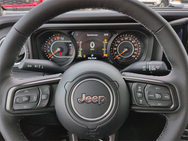 Convenience Group (Corning Gorilla Glass, Daytime Running Lamp System, Emergency/Assistance Call, Front Door Locks 2-Door Passive Entry, Heated Front Seats, Heated Steering Wheel, Remote Start System, and Universal Garage Door Opener), Quick Order Package 24Q High Tide (97 MPH Vehicle Max Speed Calibration, Advanced Brake Assist, Automatic Headlamps, Body Color 3-Piece Hard Top, Body Color Fender Flares (2-Piece), Deep Tint Sunscreen Windows, Freedom Panel Storage Bag, Full Length Floor Console Premium Armrest, Full Speed Forward Collision Warning Plus, Hard Seat Back, High Tide, High Tide Tailgate & Hood Decals, Integrated Radar Camera Module (IRCM), Leather Wrapped Park Brake Handle, Leather Wrapped Shift Knob, Power 4-Way Driver Lumbar Adjust, Power 4-Way Passenger Lumbar Adjust, Power Adjust 8-Way Driver Seat, Power Adjust 8-Way Front Passenger Seat, Power Heated Mirrors, Premium Door Trim Panel, Premium McKinley Trimmed Seats, Premium Wrapped Steering Wheel, Rear Armrest w/Cupholder Seat, Rear Sliding Window, Rear Window Defroster, Security Alarm, Sun Visors w/Illuminated Vanity Mirrors, Wheels: 17" x 7.5" Painted Black, and Willys Suspension), 110 MPH Vehicle Max Speed Calibration, 12.3" Touchscreen Display, 3.73 Rear Axle Ratio, 4-Wheel Disc Brakes, 4G LTE Wi-Fi Hot Spot, 8 Speakers, ABS brakes, Air Conditioning, Alexa Built-In, AM/FM radio: SiriusXM, Apple CarPlay, Apple CarPlay/Android Auto, Brake assist, Cloth Low-Back Bucket Seats, Compass, Connectivity - US/Canada, Delay-off headlights, Driver door bin, Driver vanity mirror, Dual front impact airbags, Dual front side impact airbags, Electronic Stability Control, Front anti-roll bar, Front Bucket Seats, Front Center Armrest w/Storage, Front fog lights, Front reading lights, Google Android Auto, Illuminated entry, Integrated roll-over protection, Low tire pressure warning, MOPAR All-Weather Slush Mats, Normal Duty Suspension, Occupant sensing airbag, Outside temperature display, Overhead airbag, Panic alarm, ParkView Rear Back-Up Camera, Passenger door bin, Passenger vanity mirror, Power steering, Power windows, Radio data system, Radio: Uconnect 5 w/12.3" Display, Rear anti-roll bar, Rear reading lights, Remote keyless entry, Side Steps, Speed control, Split folding rear seat, Steering wheel mounted audio controls, Tachometer, Telescoping steering wheel, Tilt steering wheel, Traction control, Trip computer, USB Host Flip, Variably intermittent wipers, Voltmeter, and Wheels: 17" x 7.5" Black Steel Styled. Price includes: $1000 - 2025 Southeast BC Bonus Cash. Exp. 03/02/2026 $1000 - 2025 Southeast BC Regional Bonus Cash . Exp. 03/02/2026 $2250 - 2025 National Retail Bonus Cash . Exp. 03/02/2026
