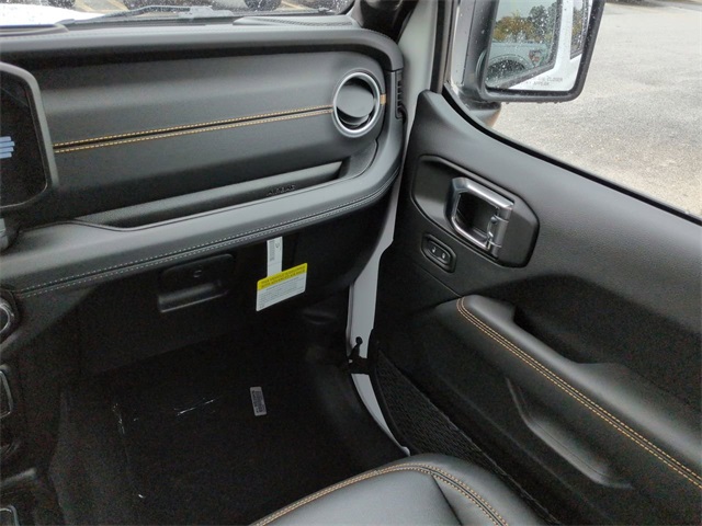 Convenience Group (Corning Gorilla Glass, Daytime Running Lamp System, Emergency/Assistance Call, Front Door Locks 2-Door Passive Entry, Heated Front Seats, Heated Steering Wheel, Remote Start System, and Universal Garage Door Opener), Quick Order Package 24Q High Tide (97 MPH Vehicle Max Speed Calibration, Advanced Brake Assist, Automatic Headlamps, Body Color 3-Piece Hard Top, Body Color Fender Flares (2-Piece), Deep Tint Sunscreen Windows, Freedom Panel Storage Bag, Full Length Floor Console Premium Armrest, Full Speed Forward Collision Warning Plus, Hard Seat Back, High Tide, High Tide Tailgate & Hood Decals, Integrated Radar Camera Module (IRCM), Leather Wrapped Park Brake Handle, Leather Wrapped Shift Knob, Power 4-Way Driver Lumbar Adjust, Power 4-Way Passenger Lumbar Adjust, Power Adjust 8-Way Driver Seat, Power Adjust 8-Way Front Passenger Seat, Power Heated Mirrors, Premium Door Trim Panel, Premium McKinley Trimmed Seats, Premium Wrapped Steering Wheel, Rear Armrest w/Cupholder Seat, Rear Sliding Window, Rear Window Defroster, Security Alarm, Sun Visors w/Illuminated Vanity Mirrors, Wheels: 17" x 7.5" Painted Black, and Willys Suspension), 110 MPH Vehicle Max Speed Calibration, 12.3" Touchscreen Display, 3.73 Rear Axle Ratio, 4-Wheel Disc Brakes, 4G LTE Wi-Fi Hot Spot, 8 Speakers, ABS brakes, Air Conditioning, Alexa Built-In, AM/FM radio: SiriusXM, Apple CarPlay, Apple CarPlay/Android Auto, Brake assist, Cloth Low-Back Bucket Seats, Compass, Connectivity - US/Canada, Delay-off headlights, Driver door bin, Driver vanity mirror, Dual front impact airbags, Dual front side impact airbags, Electronic Stability Control, Front anti-roll bar, Front Bucket Seats, Front Center Armrest w/Storage, Front fog lights, Front reading lights, Google Android Auto, Illuminated entry, Integrated roll-over protection, Low tire pressure warning, MOPAR All-Weather Slush Mats, Normal Duty Suspension, Occupant sensing airbag, Outside temperature display, Overhead airbag, Panic alarm, ParkView Rear Back-Up Camera, Passenger door bin, Passenger vanity mirror, Power steering, Power windows, Radio data system, Radio: Uconnect 5 w/12.3" Display, Rear anti-roll bar, Rear reading lights, Remote keyless entry, Side Steps, Speed control, Split folding rear seat, Steering wheel mounted audio controls, Tachometer, Telescoping steering wheel, Tilt steering wheel, Traction control, Trip computer, USB Host Flip, Variably intermittent wipers, Voltmeter, and Wheels: 17" x 7.5" Black Steel Styled. Price includes: $1000 - 2025 Southeast BC Bonus Cash. Exp. 03/02/2026 $1000 - 2025 Southeast BC Regional Bonus Cash . Exp. 03/02/2026 $2250 - 2025 National Retail Bonus Cash . Exp. 03/02/2026