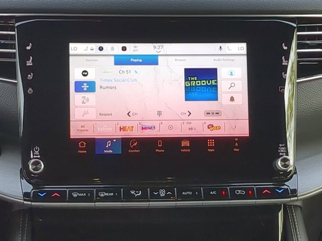 Carbide Appearance Package, Quick Order Package 25F Carbide (Black Exterior Accents and Wheels: 20" x 9" Gloss Black Painted Aluminum), 10 Speakers, 118 MPH Maximum Speed Calibration, 3.55 Rear Axle Ratio, 3rd row seats: bench, 4-Wheel Disc Brakes, ABS brakes, Air Conditioning, Alloy wheels, AM/FM radio: SiriusXM with 360L, Anti-whiplash front head restraints, Apple CarPlay/Android Auto, Audio memory, Auto Adjust In Reverse Exterior Mirrors, Auto-dimming door mirrors, Auto-Dimming Exterior Driver Mirror, Auto-dimming Rear-View mirror, Auto-leveling suspension, Automatic temperature control, Brake assist, Bumpers: body-color, Compass, Delay-off headlights, Driver door bin, Driver vanity mirror, Driver's Seat Mounted Armrest, Dual front impact airbags, Dual front side impact airbags, Electronic Stability Control, Emergency communication system: Jeep Connect, Exterior Mirrors Approach Lamps, Exterior Mirrors w/Memory, Exterior Mirrors w/Supplemental Signals, Four wheel independent suspension, Front anti-roll bar, Front Bucket Seats, Front Center Armrest w/Storage, Front dual zone A/C, Front fog lights, Front reading lights, Fully automatic headlights, Garage door transmitter, Genuine wood console insert, Genuine wood dashboard insert, Genuine wood door panel insert, Heated door mirrors, Heated Exterior Mirrors, Heated front seats, Heated rear seats, Heated steering wheel, Illuminated entry, Knee airbag, Leather Trimmed Bucket Seats, Low tire pressure warning, Memory seat, Navigation System, Normal Duty Suspension, Occupant sensing airbag, Outside temperature display, Overhead airbag, Overhead console, Panic alarm, ParkView Rear Back-Up Camera, Passenger door bin, Passenger seat mounted armrest, Passenger vanity mirror, Power adjustable front head restraints, Power door mirrors, Power driver seat, Power Liftgate, Power passenger seat, Power steering, Power windows, Radio data system, Radio: Uconnect 5 Nav w/10.1" Display, Rain sensing wipers, Rear air conditioning, Rear anti-roll bar, Rear dual zone A/C, Rear reading lights, Rear seat center armrest, Rear window defroster, Rear window wiper, Reclining 3rd row seat, Remote keyless entry, Security system, Speed control, Speed-sensing steering, Speed-Sensitive Wipers, Split folding rear seat, Steering wheel memory, Steering wheel mounted audio controls, Tachometer, Telescoping steering wheel, Tilt steering wheel, Traction control, Trip computer, Turn signal indicator mirrors, Variably intermittent wipers, Ventilated front seats, Voltmeter, and Wheels: 20" x 9.0" Premium 2 Aluminum.