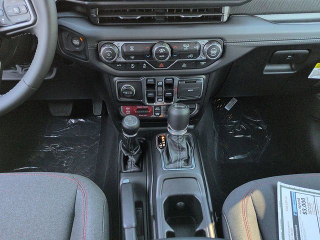 Quick Order Package 22R Rubicon, 4-Wheel Disc Brakes, 4.10 Rear Axle Ratio, 4G LTE Wi-Fi Hot Spot, 8 Speakers, 97 MPH Vehicle Max Speed Calibration, ABS brakes, Air Conditioning, Alloy wheels, Alpine Premium Audio System, AM/FM radio: SiriusXM, Apple CarPlay, Apple CarPlay/Android Auto, Automatic temperature control, Aux Battery, Auxiliary Switches, Brake assist, Class II Receiver Hitch, Cloth Low-Back Bucket Seats, Compass, Connectivity - US/Canada, Delay-off headlights, Driver door bin, Driver vanity mirror, Dual front impact airbags, Dual front side impact airbags, Electronic Stability Control, Emergency communication system: Jeep Connect, Front anti-roll bar, Front Bucket Seats, Front Center Armrest w/Storage, Front dual zone A/C, Front fog lights, Front reading lights, Fully automatic headlights, Google Android Auto, Heated door mirrors, Illuminated entry, Integrated roll-over protection, Low tire pressure warning, MOPAR All-Weather Floor Mats, Non-Lock Fuel Cap w/o Discriminator, Occupant sensing airbag, Outside temperature display, Overhead airbag, Panic alarm, ParkView Rear Back-Up Camera, Passenger door bin, Passenger vanity mirror, Performance Suspension, Power door mirrors, Power steering, Power Top Quarter Window Storage Bag, Power windows, Radio data system, Radio: Uconnect 5 w/12.3" Display, Rear anti-roll bar, Rear reading lights, Rear Window Defroster, Rear Window Wiper/Washer, Remote keyless entry, Removable Rear Quarter Windows, Security system, Sky 1-Touch Power Top, Speed control, Split folding rear seat, Steering wheel mounted audio controls, Stop-Start Dual Battery System, Tachometer, Telescoping steering wheel, Tilt steering wheel, Traction control, Trip computer, Variably intermittent wipers, Voltmeter, and Wheels: 17" x 7.5" Machined/Painted Black.