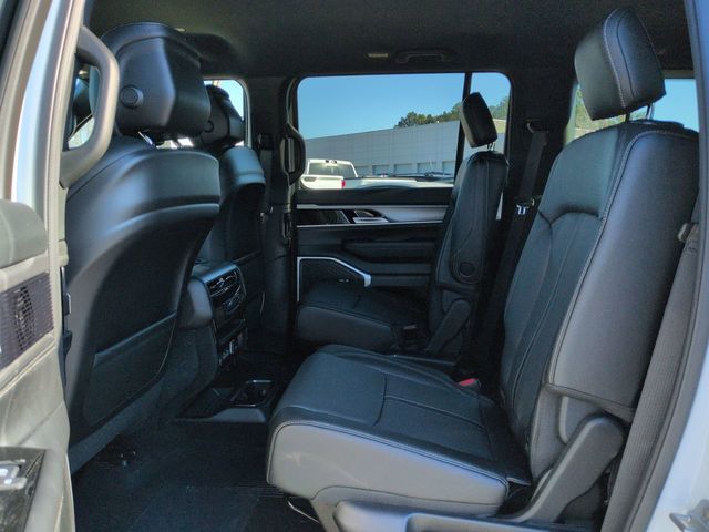 Quick Order Package 29E Grand Wagoneer, 118 MPH Maximum Speed Calibration, 3.55 Rear Axle Ratio, 3rd row seats: bench, 4-Wheel Disc Brakes, 9 Speakers, ABS brakes, Air Conditioning, Alloy wheels, AM/FM radio: SiriusXM with 360L, Anti-whiplash front head restraints, Apple CarPlay/Android Auto, Audio memory, Auto Adjust in Reverse Exterior Mirrors, Auto High-beam Headlights, Auto-dimming door mirrors, Auto-Dimming Exterior Driver Mirror, Auto-dimming Rear-View mirror, Auto-leveling suspension, Automatic temperature control, Brake assist, Bumpers: body-color, Compass, Delay-off headlights, Driver door bin, Driver vanity mirror, Driver's Seat Mounted Armrest, Dual front impact airbags, Dual front side impact airbags, Electronic Stability Control, Emergency communication system: Jeep Connect, Exterior Mirrors Approach Lamps, Exterior Mirrors w/Memory, Exterior Mirrors w/Supplemental Signals, Exterior Parking Camera Rear, Four wheel independent suspension, Front anti-roll bar, Front Bucket Seats, Front Center Armrest w/Storage, Front dual zone A/C, Front fog lights, Front reading lights, Fully automatic headlights, Garage door transmitter, Heated door mirrors, Heated Exterior Mirrors, Heated front seats, Heated steering wheel, Illuminated entry, Knee airbag, Leather Trimmed Bucket Seats, Low tire pressure warning, Memory seat, Navigation System, Normal Duty Suspension, Occupant sensing airbag, Outside temperature display, Overhead airbag, Overhead console, Panic alarm, Passenger door bin, Passenger seat mounted armrest, Passenger vanity mirror, Power door mirrors, Power driver seat, Power Liftgate, Power passenger seat, Power steering, Power windows, Radio data system, Radio: Uconnect 5 Nav w/12.0" Display, Rain sensing wipers, Rear air conditioning, Rear anti-roll bar, Rear reading lights, Rear seat center armrest, Rear window defroster, Rear window wiper, Reclining 3rd row seat, Remote keyless entry, Security system, Speed control, Speed-sensing steering, Speed-Sensitive Wipers, Split folding rear seat, Steering wheel memory, Steering wheel mounted audio controls, Tachometer, Telescoping steering wheel, Tilt steering wheel, Traction control, Trip computer, Turn signal indicator mirrors, Variably intermittent wipers, Ventilated front seats, Voltmeter, and Wheels: 20" x 9" Machine Face Painted Aluminum.