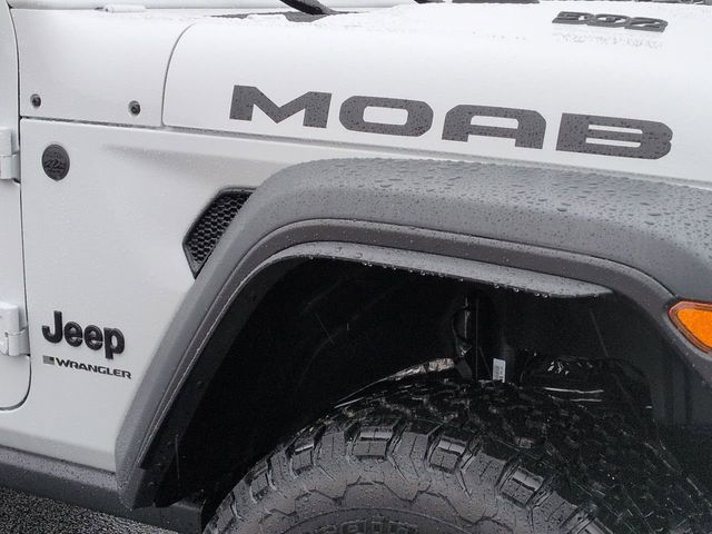 Quick Order Package 27X Moab (Body Color Grille w/Neu Grey Metallic Ring, Delete 4-Wheel Drive Swing Gate Decal, E-Locker Front Axle, Freedom Panel Storage Bag, Front Disconnecting Stabilizer Bar, MOAB 392 Hood Decal, MOAB 392 Swing Gate Plaque, MOPAR Hardtop Headliner, Nappa Leather Seats, Premium Door Trim Panel, Rear Window Defroster, Rear Window Wiper/Washer, and Sepia Interior Accents), 12.3" Touchscreen Display, 35" Tire Rubicon 392 Suspension, 4-Wheel Disc Brakes, 4.56 Rear Axle Ratio, 4G LTE Wi-Fi Hot Spot, 9 Speakers, ABS brakes, Air Conditioning, Alloy wheels, AM/FM radio: SiriusXM with 360L, Apple CarPlay, Apple CarPlay/Android Auto, Auto-dimming Rear-View mirror, Automatic temperature control, Aux Battery, Auxiliary Switches, Brake assist, Class II Receiver Hitch, Compass, Connectivity - US/Canada, Delay-off headlights, Driver door bin, Driver vanity mirror, Dual front impact airbags, Dual front side impact airbags, Electronic Stability Control, Emergency communication system: Jeep Connect, For More Info, Call 800-643-2112, Front anti-roll bar, Front Bucket Seats, Front Center Armrest w/Storage, Front dual zone A/C, Front fog lights, Front reading lights, Fully automatic headlights, Garage door transmitter, Glass rear window, Google Android Auto, Heated door mirrors, Heated front seats, Heated steering wheel, Illuminated entry, Integrated Center Stack Radio, Integrated roll-over protection, Leather Shift Knob, Leather steering wheel, Low tire pressure warning, MOPAR All-Weather Floor Mats, Navigation System, Non-Lock Fuel Cap Without Discriminator, Occupant sensing airbag, Outside temperature display, Overhead airbag, Panic alarm, ParkView Rear Back-Up Camera, Passenger door bin, Passenger vanity mirror, Power door mirrors, Power driver seat, Power passenger seat, Power steering, Power Top Quarter Window Storage Bag, Power windows, Radio data system, Radio: Uconnect 5 Navigation with 12.3" Display, Rear anti-roll bar, Rear reading lights, Rear seat center armrest, Rear window defroster, Rear window wiper, Remote keyless entry, Removable Rear Quarter Windows, Security system, SiriusXM Radio Service, SiriusXM with 360L, Sky One-Touch Power Top, Speed control, Split folding rear seat, Sport steering wheel, Steering wheel mounted audio controls, Stop-Start Dual Battery System, Tachometer, Telescoping steering wheel, Tilt steering wheel, Traction control, Trip computer, Variably intermittent wipers, Voltmeter, Warn Winch, and Wheels: 17" x 8" Machined with Black Pockets.
