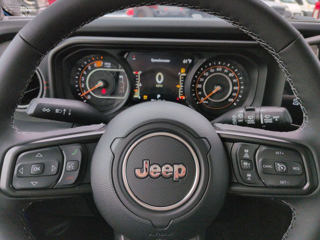 Convenience Group (Heated Front Seats, Heated Steering Wheel, and Universal Garage Door Opener), Quick Order Package 24R Rubicon, Steel Performance Hood Package (Performance Hood), Whitecap Package (1941 Side Decals, Freedom Panel Storage Bag, Gray/Black Trail Rated Badge, Matte Black Jeep Badge, Rear Window Defroster, Rear Window Wiper/Washer, White 3-Piece Hard Top, and White Grille with Neutral Gray Metallic Rings), 12.3" Touchscreen Display, 4-Wheel Disc Brakes, 4.10 Rear Axle Ratio, 4G LTE Wi-Fi Hot Spot, 8 Speakers, ABS brakes, Air Conditioning, Alloy wheels, AM/FM radio: SiriusXM with 360L, Apple CarPlay, Apple CarPlay/Android Auto, Automatic temperature control, Aux Battery, Auxiliary Switches, Body Color Rubicon Highline Flare, Brake assist, Class II Receiver Hitch, Cloth Low-Back Bucket Seats, Compass, Connectivity - US/Canada, Delay-off headlights, Driver door bin, Driver vanity mirror, Dual front impact airbags, Dual front side impact airbags, Electronic Stability Control, Emergency communication system: Jeep Connect, For More Info, Call 800-643-2112, Front anti-roll bar, Front Bucket Seats, Front Center Armrest w/Storage, Front dual zone A/C, Front fog lights, Front reading lights, Fully automatic headlights, Google Android Auto, Heated door mirrors, Illuminated entry, Integrated Center Stack Radio, Integrated roll-over protection, Low tire pressure warning, MOPAR All-Weather Floor Mats, Non-Lock Fuel Cap Without Discriminator, Occupant sensing airbag, Outside temperature display, Overhead airbag, Panic alarm, ParkView Rear Back-Up Camera, Passenger door bin, Passenger vanity mirror, Performance Suspension, Power door mirrors, Power steering, Power windows, Radio data system, Radio: Uconnect 5 with 12.3" Display, Rear anti-roll bar, Rear reading lights, Remote keyless entry, Security system, SiriusXM Radio Service, SiriusXM with 360L, Speed control, Split folding rear seat, Steering wheel mounted audio controls, Stop-Start Dual Battery System, Tachometer, Telescoping steering wheel, Tilt steering wheel, Traction control, Trip computer, Variably intermittent wipers, Voltmeter, and Wheels: 17" x 7.5" Machined/Painted Black. Price includes: $1000 - 2026 National Retail Bonus Cash . Exp. 04/30/2026