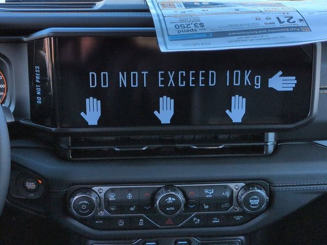 Quick Order Package 22G, Safety Group (Auto High Beam Headlamp Control, Blind Spot and Cross Path Detection, and ParkSense Rear Park Assist System), Technology Group (12.3" Touchscreen Display, 4G LTE Wi-Fi Hot Spot, Apple CarPlay, Auto-Dimming Rear-View Mirror, Connected Travel and Traffic Services, Connectivity - US/Canada, For More Info, Call 800-643-2112, Google Android Auto, GPS Navigation, HD Radio, Integrated Center Stack Radio, Integrated Off-Road Camera, Integrated Voice Command with Bluetooth, Radio: Uconnect 5 Navigation with 12.3" Display, SiriusXM Radio Service, SiriusXM with 360L, and Universal Garage Door Opener), 3.45 Overall Top Gear Ratio, 4-Wheel Disc Brakes, 8 Speakers, ABS brakes, Air Conditioning, Alloy wheels, Alpine Premium Audio System, AM/FM radio: SiriusXM with 360L, Apple CarPlay/Android Auto, Automatic temperature control, Aux Battery, Brake assist, Cloth Low-Back Bucket Seats, Compass, Delay-off headlights, Driver door bin, Driver vanity mirror, Dual front impact airbags, Dual front side impact airbags, Electronic Stability Control, Emergency communication system: Jeep Connect, Front anti-roll bar, Front Bucket Seats, Front Center Armrest w/Storage, Front dual zone A/C, Front fog lights, Front License Plate Bracket, Front reading lights, Fully automatic headlights, Heated door mirrors, Heated front seats, Heated steering wheel, Heavy Duty Suspension with Gas Shocks, Illuminated entry, Integrated roll-over protection, Low tire pressure warning, MOPAR All-Weather Floor Mats, Non-Lock Fuel Cap Without Discriminator, Occupant sensing airbag, Outside temperature display, Overhead airbag, Panic alarm, ParkView Rear Back-Up Camera, Passenger door bin, Passenger vanity mirror, Power door mirrors, Power steering, Power Top Quarter Window Storage Bag, Power windows, Radio data system, Radio: Uconnect 5 with 12.3" Display, Rear anti-roll bar, Rear reading lights, Rear Window Defroster, Rear Window Wiper/Washer, Remote keyless entry, Removable Rear Quarter Windows, Security system, Sky One-Touch Power Top, Speed control, Split folding rear seat, Steering wheel mounted audio controls, Stop-Start Dual Battery System, Tachometer, Telescoping steering wheel, Tilt steering wheel, Traction control, Trip computer, Variably intermittent wipers, Voltmeter, and Wheels: 18" x 7.5" Machine/Painted Gray. Price includes: $1000 - 2026 National Retail Bonus Cash . Exp. 04/30/2026 $1500 - 2026 National Select Inventory Bonus Cash . Exp. 01/04/2027