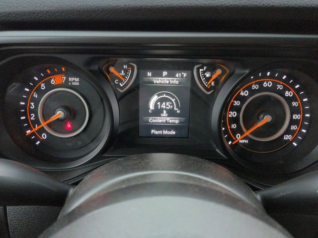 Quick Order Package 22B Sport, 12.3" Touchscreen Display, 3.45 Overall Top Gear Ratio, 4-Wheel Disc Brakes, 4G LTE Wi-Fi Hot Spot, 8 Speakers, ABS brakes, Air Conditioning, AM/FM radio: SiriusXM with 360L, Apple CarPlay, Apple CarPlay/Android Auto, Aux Battery, Black 3-Piece Hard Top, Brake assist, Cloth Low-Back Bucket Seats, Compass, Connectivity - US/Canada, Delay-off headlights, Driver door bin, Driver vanity mirror, Dual front impact airbags, Dual front side impact airbags, Electronic Stability Control, For More Info, Call 800-643-2112, Freedom Panel Storage Bag, Front anti-roll bar, Front Bucket Seats, Front Center Armrest w/Storage, Front fog lights, Front reading lights, Google Android Auto, Illuminated entry, Integrated Center Stack Radio, Integrated roll-over protection, Low tire pressure warning, MOPAR All-Weather Floor Mats, Non-Lock Fuel Cap Without Discriminator, Normal Duty Suspension, Occupant sensing airbag, Outside temperature display, Overhead airbag, Panic alarm, ParkView Rear Back-Up Camera, Passenger door bin, Passenger vanity mirror, Power steering, Power windows, Radio data system, Radio: Uconnect 5 with 12.3" Display, Rear anti-roll bar, Rear reading lights, Rear Window Defroster, Rear Window Wiper/Washer, Remote keyless entry, SiriusXM Radio Service, SiriusXM with 360L, Speed control, Steering wheel mounted audio controls, Stop-Start Dual Battery System, Tachometer, Telescoping steering wheel, Tilt steering wheel, Traction control, Trip computer, Variably intermittent wipers, Wheels: 17" x 7.5" Black Steel Styled, and Wheels: 17" x 7.5" Gray.