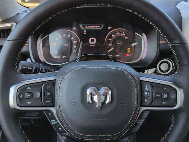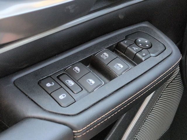 Bed Utility Group (Exterior 115V AC Outlet, MOPAR 4 Adjustable Cargo Tie-Down Hooks, and Truck Bed Cargo Divider), Quick Order Package 22V Tungsten, 12-Way/1-Way Trailer Connector, 3.92 Rear Axle Ratio, 4-Wheel Disc Brakes, ABS brakes, Adjustable pedals, Air Conditioning, Alloy wheels, AM/FM radio, Apple CarPlay/Android Auto, Audio memory, Auto High-beam Headlights, Auto Power-Folding Mirrors, Auto-dimming door mirrors, Auto-Dimming Exterior Driver Mirror, Auto-dimming Rear-View mirror, Auto-leveling suspension, Automatic temperature control, Bodyside moldings, Brake assist, Bumpers: body-color, Chrome Exterior Mirrors, Compass, Delay-off headlights, Driver door bin, Driver vanity mirror, Dual front impact airbags, Dual front side impact airbags, E-Locker Rear Axle, Electronic Stability Control, Exterior Mirrors Courtesy Lamps, Exterior Mirrors with Heating Element, Exterior Mirrors with Memory, Exterior Mirrors with Supplemental Signals, Exterior Parking Camera Rear, Front anti-roll bar, Front Bucket Seats, Front Center Armrest w/Storage, Front dual zone A/C, Front fog lights, Front License Plate Bracket, Front reading lights, Front wheel independent suspension, Fully automatic headlights, Garage door transmitter, Heads-Up Display, Heated door mirrors, Heated front seats, Heated rear seats, Heated steering wheel, Illuminated entry, Leather steering wheel, Low tire pressure warning, Memory seat, Navigation System, Occupant sensing airbag, Outside temperature display, Overhead airbag, Overhead console, Panic alarm, Passenger door bin, Passenger vanity mirror, Pedal memory, Power adjustable front head restraints, Power door mirrors, Power driver seat, Power moonroof, Power passenger seat, Power steering, Power windows, Premium Leather Bucket Seats, Radio data system, Radio: Uconnect 5 Nav with 14.4" Display, Rain sensing wipers, Rear anti-roll bar, Rear reading lights, Rear seat center armrest, Rear step bumper, Rear window defroster, Remote keyless entry, Security system, Speed control, Split folding rear seat, Steering wheel mounted audio controls, Tachometer, Telescoping steering wheel, Tilt steering wheel, Traction control, Trailer Brake Control, Trip computer, Turn signal indicator mirrors, Variably intermittent wipers, Ventilated front seats, Ventilated rear seats, Voltmeter, and Wheels: 22" x 9" Polish/Painted with Inserts.