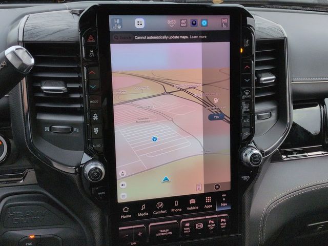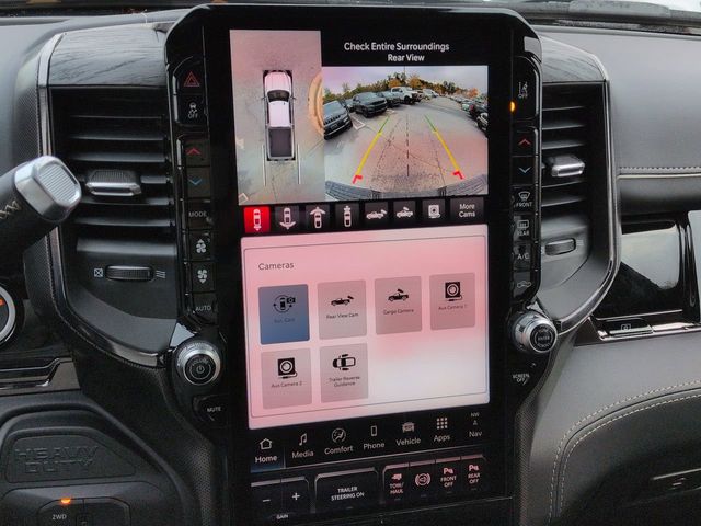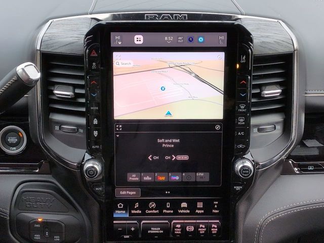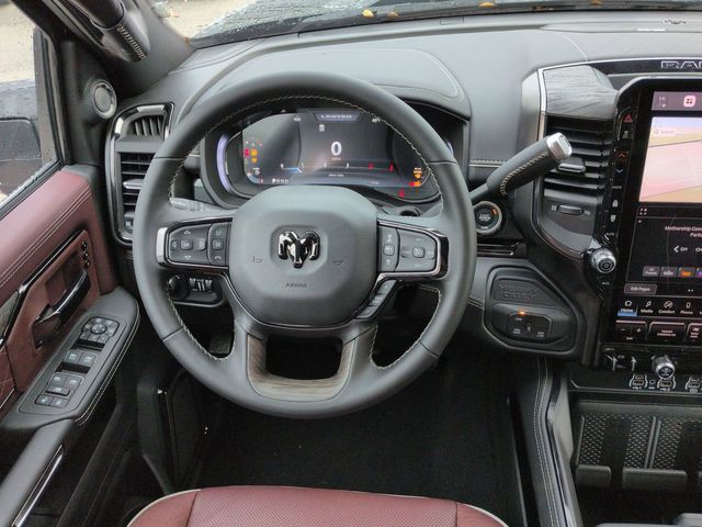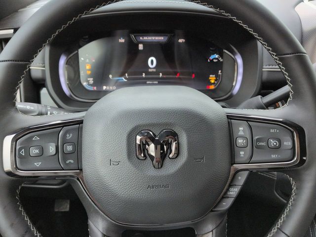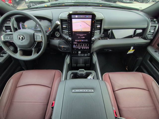 Cold Weather Group (Engine Block Heater and MOPAR Winter Front Grille Cover), Limited Level 1 Equipment Group (Active Lane Management System, Adaptive Steering System, Center Stop Lamp with Cargo View Camera, Digital Rearview Mirror, Drowsy Driver Detection, LED Bed Lighting, MOPAR Spray in Bedliner, MOPAR Trailer Camera Wiring with No Camera, Power Deployable Running Boards, Surround View Camera System, Traffic Sign Recognition, Trailer Reverse Guidance, and Trailer Tire Pressure Monitoring System), Quick Order Package 24M Limited, Tow Technology Plus Group (Digital 3.0 Rear View Auto Dim Mirror and Trailer Reverse Steering Control), 17 Speakers, 3.42 Axle Ratio, 4-Wheel Disc Brakes, 5th Wheel/Gooseneck Towing Prep Group, ABS brakes, Adjustable pedals, Air Conditioning, Alloy wheels, AM/FM radio: SiriusXM with 360L, Apple CarPlay/Android Auto, Audio memory, Auto High-beam Headlights, Auto-dimming door mirrors, Auto-dimming Rear-View mirror, Automatic temperature control, Black Wheel Center Hub, Bodyside moldings, Brake assist, Bumpers: body-color, Clearance Lamps, Compass, Delay-off headlights, Driver door bin, Driver vanity mirror, Dual front impact airbags, Dual front side impact airbags, Electronic Stability Control, Front anti-roll bar, Front Bucket Seats, Front Center Armrest w/Storage, Front dual zone A/C, Front fog lights, Front License Plate Bracket, Front reading lights, Fully automatic headlights, Garage door transmitter, Genuine wood console insert, Genuine wood dashboard insert, Genuine wood door panel insert, harman/kardon Speakers, Heated door mirrors, Heated front seats, Heated rear seats, Heated steering wheel, Illuminated entry, Leather steering wheel, Low tire pressure warning, Memory seat, Navigation System, Occupant sensing airbag, Outside temperature display, Overhead airbag, Overhead console, Panic alarm, ParkView Rear Back-Up Camera, Passenger door bin, Passenger vanity mirror, Pedal memory, Pickup Box, Power door mirrors, Power driver seat, Power passenger seat, Power steering, Power windows, Radio data system, Radio: Uconnect 5 Nav with 14.4" Display, Rain sensing wipers, Rear Backup Alarm, Rear reading lights, Rear seat center armrest, Rear step bumper, Rear window defroster, Remote keyless entry, Security system, Speed control, Split folding rear seat, Steering wheel mounted audio controls, Tachometer, Tilt steering wheel, Traction control, Trip computer, Turn signal indicator mirrors, Ultra Premium Leather Seats, Variably intermittent wipers, Vendor Painted Cargo Box, Vendor Painted Cargo Box Tracking, Ventilated front seats, Voltmeter, and Wheels: 20" x 8" Diamond Cut Aluminum. Price includes: $1000 - 2026 National Bonus Cash . Exp. 04/30/2026