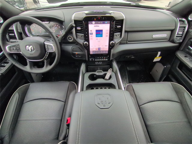 Laramie Trim Group (#1 Seat Foam Cushion, 115V Auxiliary Power Outlet, 115V Auxiliary Rear Power Outlet, 12.0" Touchscreen Display, 17 Speaker Harman/Kardon Premium Sound, 2 Way Rear Headrest Seat, 2-Door Passive Entry, Front Door Locks, 4 Way Front Headrests, 400W Inverter, 4G LTE Wi-Fi Hot Spot, Air Conditioning ATC with Dual Zone Control, Alexa Built-in, Apple CarPlay, Auto High Beam Headlamp Control, Bi-Function LED Projector Headlamps, Body Color Door Handles, Body Color Fender Flares, Bucket Seats, Center Hub, CHMSL Lamp with Camera, Chrome Billets/Accents Grille, Cluster 12" TFT Color Display, Connected Travel and Traffic Services, Connectivity - US/Canada, Courtesy Lamps, Digital Rearview Mirror, Disassociated Touchscreen Display, Dual Glove Boxes, Dual Wireless Charging Pad, Foam Bottle Insert (door Trim Panel), Folding Flat Load Floor Storage, For Details, Visit DriveUconnect.com, For More Info, Call 800-643-2112, Front Door Accent Lighting, Front Seat Back Map Pockets, Full Length Upgraded Floor Console, Global Telematics Box Module, Glove Box Lamp, Google Android Auto, GPS Antenna Input, GPS Navigation, HD Radio, Heated 2nd Row Seats, Heated Front Seats, Heated Steering Wheel, High Back Seats, Highline Door Trim Panel, Integrated Voice Command with Bluetooth, Leather Trimmed Bucket Seats, LED Daytime Running Headlamps, LED Dome Lamp with on/Off Switch, LED Interior Lighting, Locking Lower Glove Box, Luxury Steering Wheel, Media Hub with 2 Charge Only USBs, Off-Road Info Pages, Overhead LED Lamps, Painted Front Bumper, Painted I/P Bezels with Premium Film, ParkSense Front/Rear Park Assist System, Power 2-Way Driver Lumbar Adjust, Power 2-Way Passenger Lumbar Adjust, Power 8-Way Adjustable Driver Seat, Power 8-Way Adjustable Front Passenger Seat, Power Rear Sliding Window, Premium Overhead Console, Radio: Uconnect 5 Navigation with 12.0" Display, Rain Sensitive Windshield Wipers, Rear 60/40 Folding Seat, Rear Door Accent Lighting, Rear Window Defroster, Remote Start System, SiriusXM Radio Service, SiriusXM with 360L, Steering Wheel Mounted Audio Controls, Sun Visors with Illuminated Vanity Mirrors, Temperature and Compass Gauge, Trailer Tow Pages, Universal Garage Door Opener, Ventilated Front Seats, and Wheels: 19.5" x 6.0" Forged Aluminum Polished), Max Tow Package (Trailer Brake Control and Trailer Light Check), Quick Order Package 25Z Big Horn (19.5" x 6.0" Steel Wheels, 40/20/40 Split Bench Seat, Acoustic Front Door Glass, Black Exterior Mirrors, Black Power Heated Fold Telescope Mirrors, Black-Out Tape, Body Insulation, Bright Front Bumper, Chrome Grille Surround, Cloth 40/20/40 Bench Seat, Exterior Mirrors Courtesy Lamps, Exterior Mirrors with Heating Element, Exterior Mirrors with Supplemental Signals, Front Armrest with Cupholders, Manual Adjust 4-Way Driver Seat, Manual Adjust 4-Way Front Passenger Seat, Manual Folding Exterior Mirrors, Manuarl Telescoping Mirrors, Matte Black Mesh with Chrome Grille, Mirror Running Lights, Painted I/P Bezels with Hydrographics, Passenger Sun Visor with Illuminated Mirror, Power Adjust Mirrors, Power-Adjustable Convex Aux Mirrors, Premium Vinyl Door Trim with Map Pocket, RAM Door Badges, Rear Folding Seat, Remote USB Port - Charge Only, Satin Chrome Key Fob, Storage Tray, Tinted Acoustic Windshield Glass, and Traveler/Mini Trip Computer), Safety Group (Adaptive Steering System, Drowsy Driver Detection, Lane Keep Assist, and Security Alarm), 4-Wheel Disc Brakes, 4.44 Axle Ratio, 6 Speakers, ABS brakes, Air Conditioning, AM/FM radio: SiriusXM, Apple CarPlay/Android Auto, Compass, Delay-off headlights, Driver door bin, Dual front impact airbags, Dual rear wheels, Electronic Stability Control, Emergency communication system: RAM Connect, Front anti-rol Price includes: $2500 - 2026 National Bonus Cash . Exp. 0