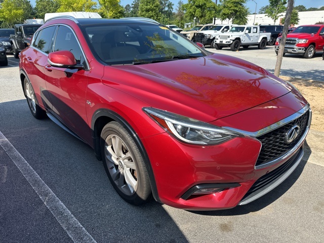 This 2017 INFINITI QX30 Premium in Magnetic Red features: 4D Sport Utility, 2.0L I4 Turbocharged, 7-Speed Automatic, FWD, **LOCAL TRADE**, 10 Speakers, 4-Wheel Disc Brakes, 7" Color Touchscreen, ABS brakes, AM/FM radio: SiriusXM, Auto-dimming door mirrors, Auto-dimming Rear-View mirror, Automatic temperature control, Backup Camera, Bluetooth w/ Audio Streaming, Bose High End Sound Package, Brake assist, Cargo Net, Cargo Package, Color Center Meter Display, Electronic Stability Control, First Aid Kit, Four wheel independent suspension, Front & Rear Parking Sensors, Front Center Armrest, Front dual zone A/C, Fully automatic headlights, Garage door transmitter: HomeLink, Heated door mirrors, Heated Front Bucket Seats, Hill Start Assist, Illuminated entry, Illuminated Kick Plates, INFINITI InTouch Navigation System, Leather Seats, Leather Shift Knob, Leather steering wheel, LED Foglights, Low tire pressure warning, Memory Package, Memory seat, Nappa Leather Seat Trim, Navigation Package, Outside temperature display, Overhead console, Panic alarm, Panoramic Moonroof, Panoramic Sunroof/Moonroof, Power door mirrors, Power driver seat, Power Mirror Package, Power Package, Power passenger seat, Power steering, Power windows, Premium Package, Premium Sound Package, Radio data system, Radio: Bose 10-Speaker Premium Audio System, Rain sensing wipers, Rear Bumper Protector, Rear fog lights, Rear seat center armrest, Rear window wiper, Remote keyless entry, Reversible Cargo Mat, Security system, Speed control, Speed-sensing steering, Splash Guards, Split folding rear seat, Spoiler, Steering wheel mounted audio controls, Telescoping steering wheel, Tilt steering wheel, Traction control, Trip computer, Turn signal indicator mirrors.