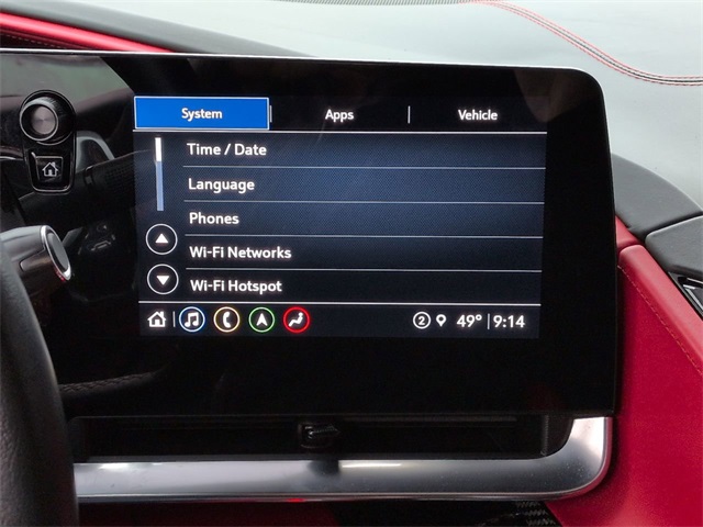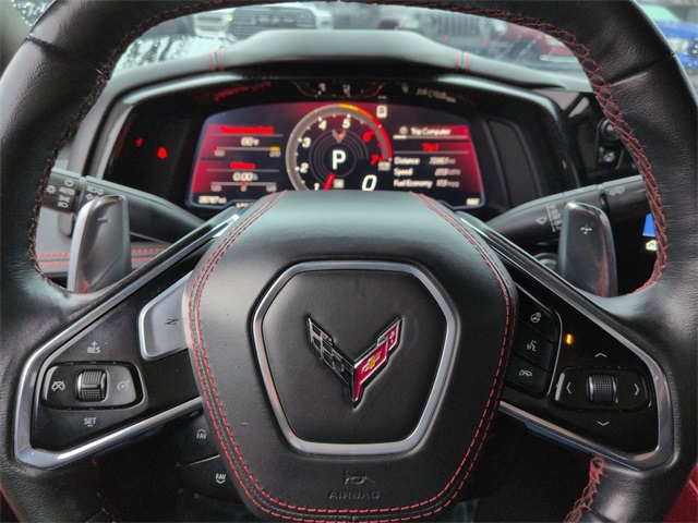 This 2021 Chevrolet Corvette Stingray in Black features: 2D Convertible, 6.2L V8, 8 Speed Dual Clutch, RWD, 12.4" LCD Digital Driver Cluster, 14 Speakers, 2 Cargo Nets, 4-Wheel Disc Brakes, 4G WiFi Hotspot Telematics, 8-Way Power Driver Seat Adjuster, 8-Way Power Passenger Seat Adjuster, 8" Color Touchscreen, ABS brakes, Adaptive Ride Package, Adaptive Suspension, Android Auto, Apple Carplay, Auto-dimming door mirrors, Auto-dimming Rear-View mirror, Automatic temperature control, Backup Camera, Battery Protection Package, Black Lug Nuts (LPO), Black Wheel Locks (LPO), Blind Spot Monitoring, Bluetooth w/ Audio Streaming, Bose High End Sound Package, Bose Performance Series Sound System w/14 Speakers, Brake assist, Carbon Flash Metallic-Painted Outside Mirrors, Cold Weather Package, Compass, Convertible HardTop, Convertible roof lining, Custom Leather Wrapped Interior Package, Delay-off headlights, Driver Power Bolster Seat Adjuster, Electrical Theft Deterrent System, Electronic Limited-Slip Differential, Electronic Stability Control, Emergency communication system: OnStar and Chevrolet connected services capable, Four wheel independent suspension, Front Center Armrest, Front dual zone A/C, Fully automatic headlights, Garage door transmitter, Glass rear window, GT2 Bucket Seats, HD Front & Rear Vision Cameras, HD Radio, HD Surround Vision, Head-Up Display, Heads-Up Display, Heated & Vented Driver & Passenger Seats, Heated door mirrors, Heated front seats, Heated Steering Wheel, Heated steering wheel, Heavy-Duty Cooling System, Illuminated entry, Integrated roll-over protection, Leather Seats, Leather Shift Knob, Leather steering wheel, Low tire pressure warning, LT Package, Memory Driver & Passenger Convenience Package, Memory Package, Memory seat, Napa Lthr Seating Surfaces w/Perforated Inserts, Navigation System, Outside temperature display, Overhead console, Panic alarm, Parking Sensors, Passenger Power Bolster Seat Adjuster, Performance Data & Video Recorder, Performance Exhaust w/Stainless-Steel Tips, Performance Handling Package, Performance Package, Performance Rear Axle Ratio, Performance Traction Management, Power convertible roof, Power door mirrors, Power Driver Lumbar Control Seat Adjuster, Power Mirror Package, Power Package, Power Passenger Lumbar Control Seat Adjuster, Power passenger seat, Power-Adjustable Outside Heated Mirrors, Preferred Equipment Group 3LT, Preferred Equipment Package, Premium Sound Package, Push Button Start, Radio data system, Radio: Chevrolet Infotainment 3 Premium System, Rear Cross Traffic Alert, Rear Cross Traffic Alert, Rear Parking Sensors, Rear Z51 Spoiler, Remote keyless entry, Remote Start, Reverse Brake Assist, Reverse Sensing, Safety Package, Security system, Shadow Gray Exterior Accents, Side Blind Zone Alert, SiriusXM Radio, Speed control, Speed-sensing steering, Sport steering wheel, Steering wheel memory, Steering wheel mounted audio controls, Sueded Microfiber-Wrapped Upper Interior Trim Pkg, Telescoping steering wheel, Tilt steering wheel, Torch Red Seat Belt Color, Traction control, Trip computer, Turn signal indicator mirrors, Universal Home Remote, Variably intermittent wipers, Vehicle Inclination Theft Deterrent Sensor, Vehicle Interior Movement Theft Deterrent Sensor, Ventilated front seats, Visible Carbon Fiber Grille Insert (LPO), Visible Carbon Fiber Outside Mirror Covers (LPO), Wheels: 19" x 8.5" Fr/20" x 11" Rr Black (LPO), Wireless Apple CarPlay/Wireless Android Auto, Wireless Charging for Devices, Z51 Perf Suspension w/Magnetic Selective Ride Cntrl, Z51 Performance Brakes, Z51 Performance Package, Z51 Performance Suspension.