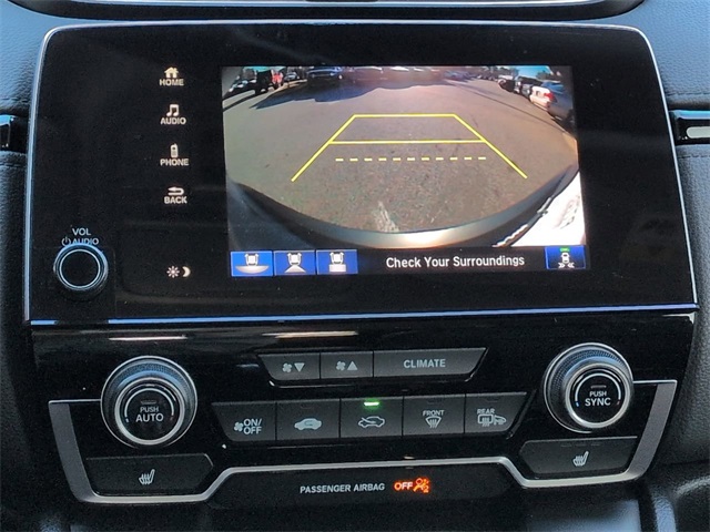 This 2021 Honda CR-V EX-L in Obsidian Blue Pearl features: 4D Sport Utility, 1.5L I4 DOHC 16V, CVT, FWD, 18" Alloy Wheels, 4-Wheel Disc Brakes, 7" Color Touchscreen, 8 Speakers, ABS brakes, Adaptive Cruise Control, Adaptive Cruise Control: Adaptive Cruise Control (ACC) with Low-Speed Follow, AM/FM radio: SiriusXM, Android Auto, Apple Carplay, Apple CarPlay/Android Auto, Auto Emergency Braking, Auto High-beam Headlights, Auto-dimming Rear-View mirror, Automatic temperature control, Backup Camera, Blind Spot Information (BSI) System warning, Blind Spot Monitoring, Bluetooth w/ Audio Streaming, Brake assist, Compass, Delay-off headlights, Driver Attention Warning, Electronic Stability Control, Exterior Parking Camera Rear, Forward collision: Collision Mitigation Braking System (CMBS) + FCW mitigation, Four wheel independent suspension, Foward Collison Alert, Front Center Armrest, Front dual zone A/C, Front fog lights, Garage door transmitter: HomeLink, Heated door mirrors, Heated Front Bucket Seats, Illuminated entry, Leather Seat Trim, Leather Seats, Leather Shift Knob, Low tire pressure warning, Memory Package, Memory seat, Outside temperature display, Overhead console, Panic alarm, Parking Sensors, Power door mirrors, Power driver seat, Power Liftgate, Power Mirror Package, Power moonroof, Power Package, Power passenger seat, Power steering, Power windows, Premium Audio Package, Premium Sound Package, Radio data system, Radio: 180-Watt AM/FM/HD/SiriusXM Audio System, Rear Cross Traffic Alert, Rear seat center armrest, Rear window wiper, Remote keyless entry, Reverse Brake Assist, Reverse Sensing, Security system, Speed-sensing steering, Speed-Sensitive Wipers, Split folding rear seat, Spoiler, Steering wheel mounted audio controls, Telescoping steering wheel, Tilt steering wheel, Traction control, Trip computer, Turn signal indicator mirrors.