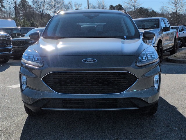 This 2022 Ford Escape Titanium in Carbonized Gray Metallic features: 4D Sport Utility, EcoBoost 2.0L I4 GTDi DOHC Turbocharged VCT, 8-Speed Automatic, AWD, 4-Wheel Disc Brakes, 8" Color Touchscreen, ABS brakes, Active Cruise Control, Adaptive Cruise Control, AM/FM radio: SiriusXM, Auto High-beam Headlights, Auto LED Headlights, Auto-dimming Rear-View mirror, Automatic temperature control, Backup Camera, Blind Spot Monitoring, BLIS w/ Cross Traffic Alert, Bluetooth w/ Audio Streaming, Brake assist, Cold Weather Package, Compass, Delay-off headlights, Electronic Stability Control, Emergency communication system: SYNC 3 911 Assist, Equipment Group 401A, Exterior Parking Camera Rear, Four wheel independent suspension, Front Center Armrest, Front dual zone A/C, Front fog lights, Fully automatic headlights, Garage door transmitter, Hands-Free Foot-Activated Liftgate Feature Removal, Heated ActiveX Trimmed Front Sport Contour Bucket Seats, Heated door mirrors, Heated front seats, Heated steering wheel, Illuminated entry, LED Foglights, Low tire pressure warning, Memory Package, Memory seat, Multimedia Package, Navigation System, Outside temperature display, Overhead console, Panic alarm, Parking Sensors, Power door mirrors, Power driver seat, Power Liftgate, Power Mirror Package, Power Package, Power passenger seat, Power steering, Power windows, Push Button Start, Radio data system, Rain sensing wipers, Rear seat center armrest, Rear window wiper, Remote keyless entry, Remote Start, Reverse Brake Assist, Reverse Sensing, Roof rack: rails only, Security system, Speed-sensing steering, Speed-Sensitive Wipers, Split folding rear seat, Spoiler, Steering wheel mounted audio controls, SYNC 3 Communications & Entertainment System, Telescoping steering wheel, Tilt steering wheel, Traction control, Trip computer, Voice-Activated Touchscreen Navigation System, Wheels: 19" Machined-Face Aluminum.