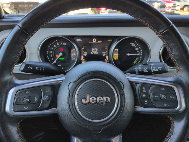 This 2022 Jeep Wrangler Unlimited Sahara High Altitude 4xe in Sting-Gray Clearcoat features: 8" Color Touchscreen, Adaptive Cruise Control, Adaptive Cruise Control w/Stop, Advanced Brake Assist, Advanced Safety Group, Advanced Safety Group, Air Conditioning, Aluminum Wheels, Android Auto, Apple Carplay, Apple CarPlay/Android Auto, Auto High Beam Headlamp Control, Auto LED Headlights, Blind Spot & Cross Path Detection, Blind Spot Monitoring, Body Color 3-Piece Hard Top, Body Color Door Handles, Body Color Front Bumper, Body Color Grille w/Gloss Black Rings, Body Color Power Locking Fuel Filler Door, Body Color Rear Bumper w/Step Pads, Cold Weather Group, Cold Weather Package, Exterior Mirrors w/Supplemental Signals, Foward Collison Alert, Freedom Panel Storage Bag, Front Bucket Seats, Front dual zone A/C, Front fog lights, Full Speed Forward Collision Warning Plus, Fully automatic headlights, Heated door mirrors, Heated Front Seats, Heated Seats, Heated Steering Wheel, High Altitude Package, Leather Seats, Leather steering wheel, Leather Trimmed Bucket Seats, LED Foglights, LED Projector Headlights, MOPAR Hinge-Gate Reinforcement, Navigation System, ParkSense Rear Park Assist System, ParkView Rear Back-Up Camera, Power door mirrors, Power Mirror Package, Power windows, Premium Audio Package, Premium Dark Exterior Accents, Premium McKinley Trimmed Seats, Quick Order Package 29N High Altitude, Radio: Uconnect 4C Nav w/8.4" Display, Rear Window Defroster, Rear Window Wiper/Washer, Remote keyless entry, Remote Start System, Safety Group, Safety Package, Sky One Touch Power Top, Speed control, Summit Badging, Wheels: 20" x 8.0" Fully Painted Aluminum, Wrapped I/P Bezel w/Caramel Stitch.