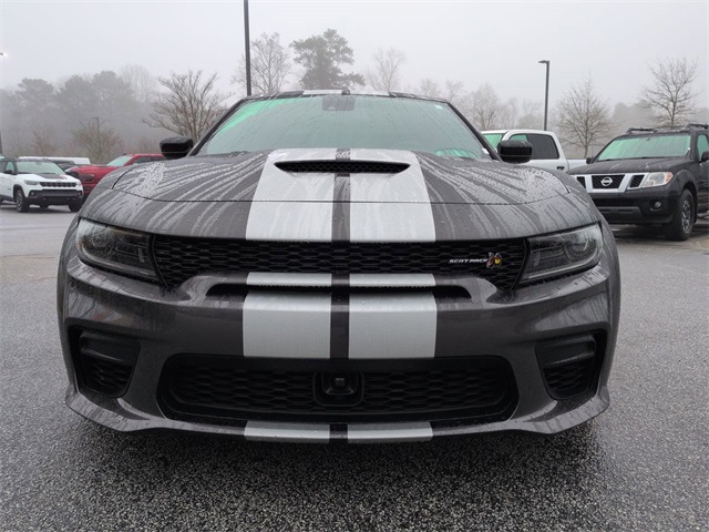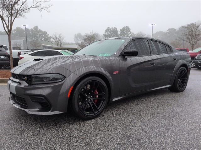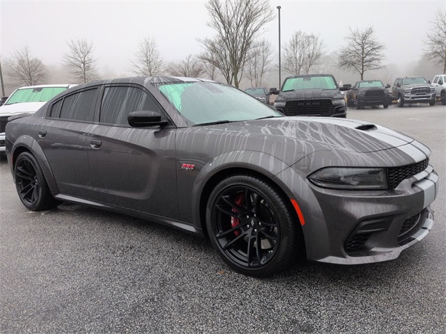 This 2023 Dodge Charger R/T Scat Pack Widebody in Granite Crystal Metallic Clearcoat features: 4D Sedan, SRT HEMI 6.4L V8 MDS, 8-Speed Automatic, RWD, **LOCAL TRADE**, 19 harman/kardon GreenEdge Speakers, 2-Piece Shark Fin Antenna, 4-Wheel Disc Brakes, 4G LTE Wi-Fi Hot Spot, 4G WiFi Hotspot Telematics, 8.4" Touchscreen Display, ABS brakes, Adaptive Cruise Control, Adaptive Cruise Control w/Stop, Adaptive Damping Suspension, Adaptive Damping Suspension (DISC), Adaptive Suspension, Advanced Brake Assist, All Speed Traction Control, Android Auto, Apple Carplay, Apple CarPlay/Android Auto, Auto Adjust In Reverse Exterior Mirrors, Auto High Beam Headlamp Control, Auto LED Headlights, Auto-Dimming Exterior Driver Mirror, Auto-dimming Rear-View mirror, Automatic temperature control, Backup Camera, Black-Edged Premium Floormats, Blind Spot & Cross Path Detection, Blind Spot Memory/Power/Heat Mirror, Blind Spot Monitoring, Bluetooth w/ Audio Streaming, Body Color Fender Flares, Brake assist, Brembo 6-Pot Fixed Front Caliper Brakes, Brembo Brakes w/ Performance Lingings, Cloth Performance Seats w/Heat, Delay-off headlights, Driver & Passenger Lower LED Lamps, Electronic Stability Control, Emergency communication system: SiriusXM Guardian, Exterior Mirrors Courtesy Lamps, Exterior Mirrors w/Heating Element, Flat-Bottom Steering Wheel, Four wheel independent suspension, Front Center Armrest, Front dual zone A/C, Front fog lights, Front Overhead LED Lighting, Front Pedestrian Braking, Full Speed Auto Collision Warning Plus, Full Speed FWD Collision Warn Plus, Fully automatic headlights, Garage door transmitter: HomeLink, GPS Antenna Input, harman/kardon Audio Group, harman/kardon GreenEdge Amp, Heated door mirrors, Heated Front Seats, Heated steering wheel, Illuminated entry, Integrated Center Stack Radio, Integrated Voice Command w/Bluetooth, Lane Departure Warning, Leather Shift Knob, Line Lock Launch Control, Low tire pressure warning, Media Hub (2 USB, AUX), Memory Package, Multimedia Package, Outside temperature display, Overhead console, Panic alarm, Parking Sensors, ParkView Rear Back-Up Camera, Performance Handling Package, Performance Package, Performance Shift Indicator, Plus Group, Power 2-Way Driver Lumbar Adjust, Power 2-Way Passenger Lumbar Adjust, Power door mirrors, Power driver seat, Power Front Driver/Passenger Seats, Power Mirror Package, Power Package, Power steering, Power Tilt/Telescope Steering Column, Power windows, Premium Audio Package, Premium Sound Package, Premium-Stitched Dash Panel, Push Button Start, Quick Order Package 21V Scat Pack Widebody, Radio: Uconnect 4C w/8.4" Display, Radio/Driver Seat/Mirrors Memory, Rain Sensitive Windshield Wipers, Rear Armrest w/Cupholder Seat, Rear Cross Traffic Alert, Rear seat center armrest, Remote Start, Reverse Brake Assist, Reverse Sensing, Safety Package, Scat Pack Logo Nappa/Alcantara Seat, Security system, Speed-Sensitive Wipers, Split folding rear seat, Spoiler, Sunroof/Moonroof, Surround Sound, Technology Group, Technology Package, Telescoping steering wheel, Tilt steering wheel, Traction control, Trip computer, Ventilated Front Seats, Wheels: 20" x 9" Lo Gloss Granite Crystal, Widebody Competition Suspension, Widebody Competition Suspension, Widebody Package.