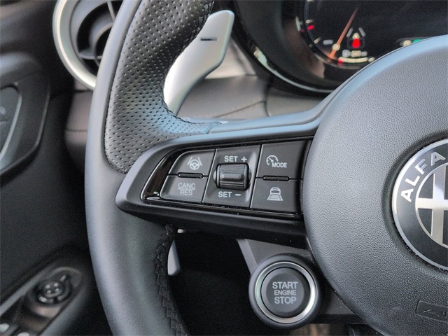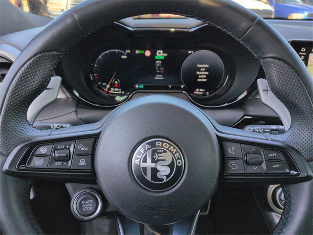 This 2024 Alfa Romeo Tonale Veloce in Alfa Black features: 4D Sport Utility, 1.3L I4, 6-Speed Automatic, AWD, 10.25" Color Touchscreen, 12.3" HD Color Driver Cluster, 4-Wheel Disc Brakes, ABS brakes, Active Assist Package (DISC), Active Driving Assist System, Adaptive suspension, AM/FM radio: SiriusXM, Android Auto, Apple Carplay, Apple CarPlay/Android Auto, Auto High-beam Headlights, Auto LED Headlights, Auto-Dimming Rear Exterior Mirrors, Auto-dimming Rear-View mirror, Automatic temperature control, Backup Camera, Bluetooth w/ Audio Streaming, Brake assist, Cold Weather Package, Compass, Delay-off headlights, Driver Attention Warning, Electronic Stability Control, Emergency communication system, Four wheel independent suspension, Front & Rear Park Assist, Front Center Armrest w/Storage, Front dual zone A/C, Front fog lights, Fully automatic headlights, Garage door transmitter, HD Surround Vision, Heated door mirrors, Heated front seats, Heated steering wheel, Illuminated entry, Lane Keeping System, Leather Seats, Leather steering wheel, Low tire pressure warning, Navigation System, Outside temperature display, Panic alarm, Parking Sensors, ParkSense Front/Rear/Side Park Assist, ParkView Rear Back-Up Camera, Perforated Alcantara Seats, Perforated Leather Seat, Power door mirrors, Power driver seat, Power Liftgate, Power Moonroof, Power passenger seat, Power steering, Power windows, Preferred Equipment Package, Premium Interior Package, Quick Order Package 28E, Radio: Uconnect 5 Nav w/10.25" Display, Rain sensing wipers, Rear seat center armrest, Rear window wiper, Remote keyless entry, Reverse Brake Assist, Reverse Sensing, Security system, Split folding rear seat, Spoiler, Steering wheel mounted audio controls, Sunroof/Moonroof, Surround View Camera System, Telescoping steering wheel, Tilt steering wheel, Traction control, Traffic Sign Recognition, Trip computer, Turn signal indicator mirrors, Ventilated Front Seats, Wheels: 20" x 8.0" Grigio 5-Hole, Wireless Charging Pad.