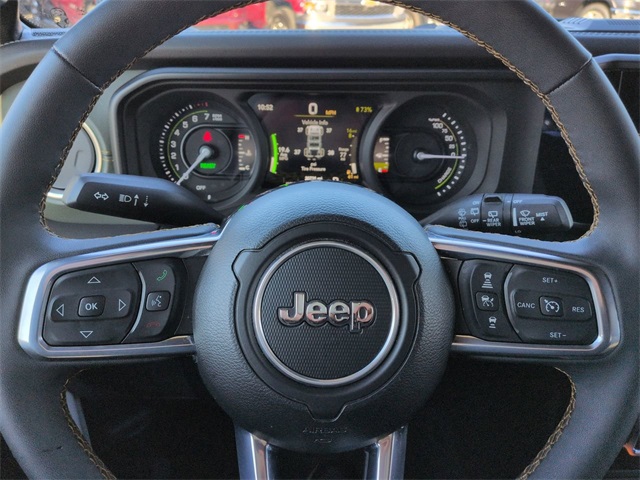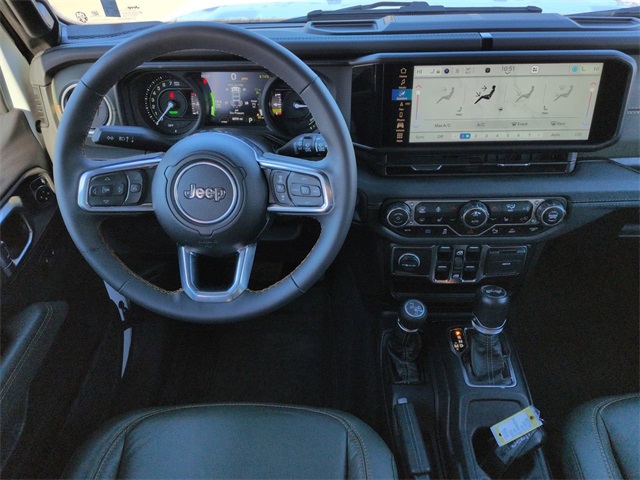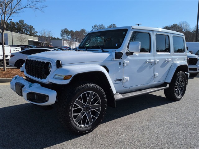 This 2024 Jeep Wrangler High Altitude 4xe in Bright White Clearcoat features: 4G WiFi Hotspot Telematics, 8" Color Touchscreen, 9 Speakers, Active Park Assist, Adaptive Cruise Control, Air Conditioning, Android Auto, Apple Carplay, Apple CarPlay/Android Auto, Auto Emergency Braking, Auto-dimming Rear-View mirror, Automatic temperature control, Backup Camera, Blind Spot Monitoring, Bluetooth, Bluetooth w/ Audio Streaming, Cold Weather Package, Foward Collison Alert, Front Bucket Seats, Front Center Armrest w/Storage, Front dual zone A/C, Front fog lights, Fully automatic headlights, Heated door mirrors, Heated front seats, Heated Seats, Leather Seats, LED Foglights, LED Projector Headlights, Nappa Leather Seats, Navigation System, Navigation System, Outside temperature display, Parking Sensors, ParkView Rear Back-Up Camera, Power door mirrors, Power Mirror Package, Power passenger seat, Power steering, Power windows, Push Button Start, Quick Order Package 29N High Altitude, Rear Cross Traffic Alert, Remote keyless entry, Remote Start, Security system, Sky 1-Touch Power Top, Sky One Touch Top, Speed control, Wheels: 20" x 8" Machined/Painted Gray.