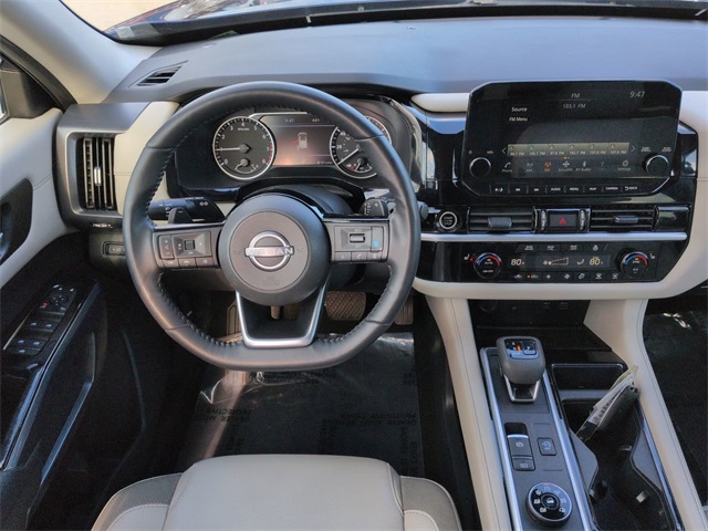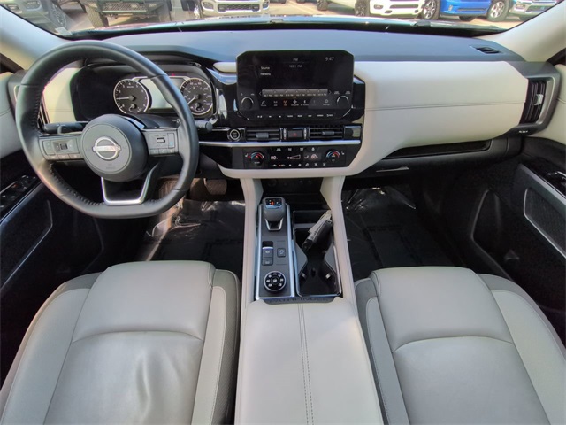 This 2024 Nissan Pathfinder SL in Deep Ocean Blue Pearl features: 4D Sport Utility, 3.5L V6 DOHC, 9-Speed Automatic, 4WD, 3rd Row Seating, 4-Wheel Disc Brakes, 6 Speakers, ABS brakes, AM/FM radio: SiriusXM, Android Auto, Apple Carplay, Auto Emergency Braking, Auto High-beam Headlights, Auto LED Headlights, Auto-dimming Rear-View mirror, Automatic temperature control, Backup Camera, Blind Spot Monitoring, Bluetooth w/ Audio Streaming, Brake assist, Cold Weather Package, Cross Bars, Delay-off headlights, Electronic Stability Control, Emergency communication system, Exterior Parking Camera Rear, Four wheel independent suspension, Foward Collison Alert, Front Center Armrest, Front dual zone A/C, Front Pedestrian Braking, Fully automatic headlights, Garage door transmitter: HomeLink, Heated door mirrors, Heated Front Bucket Seats, Heated steering wheel, Illuminated entry, Lane Departure Warning, Lane Keeping System, Leather Seats, Leather steering wheel, Leather-Appointed Seating Surfaces, Low tire pressure warning, Multi Zone Climate Control, Navigation system: NissanConnect with Navigation and Services, NissanConnect featuring Apple CarPlay and Android Auto, NissanConnect w/Navigation & Services, Outside temperature display, Overhead console, Panic alarm, Parking Sensors, Power door mirrors, Power driver seat, Power Liftgate, Power Mirror Package, Power Package, Power passenger seat, Power steering, Power windows, Radio data system, Radio: AM/FM Audio System, Rear air conditioning, Rear Climate Package, Rear Cross Traffic Alert, Rear seat center armrest, Rear window wiper, Reclining 3rd row seat, Remote keyless entry, Remote Start, Reverse Brake Assist, Reverse Sensing, Safety Package, Security system, SL Package, Speed-sensing steering, Spoiler, Steering wheel mounted audio controls, Telescoping steering wheel, Third Row Seating, Tilt steering wheel, Traction control, Traffic Sign Recognition, Trip computer, Turn signal indicator mirrors, Variably intermittent wipers, Wheels: 18" x 8J Machined Alloy, WiFi Hotspot Capable.